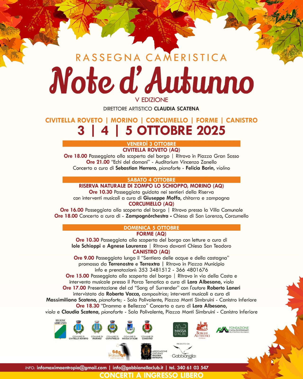 In allegato la locandina della V edizione di Rassegna Cameristica Note d'Autunno